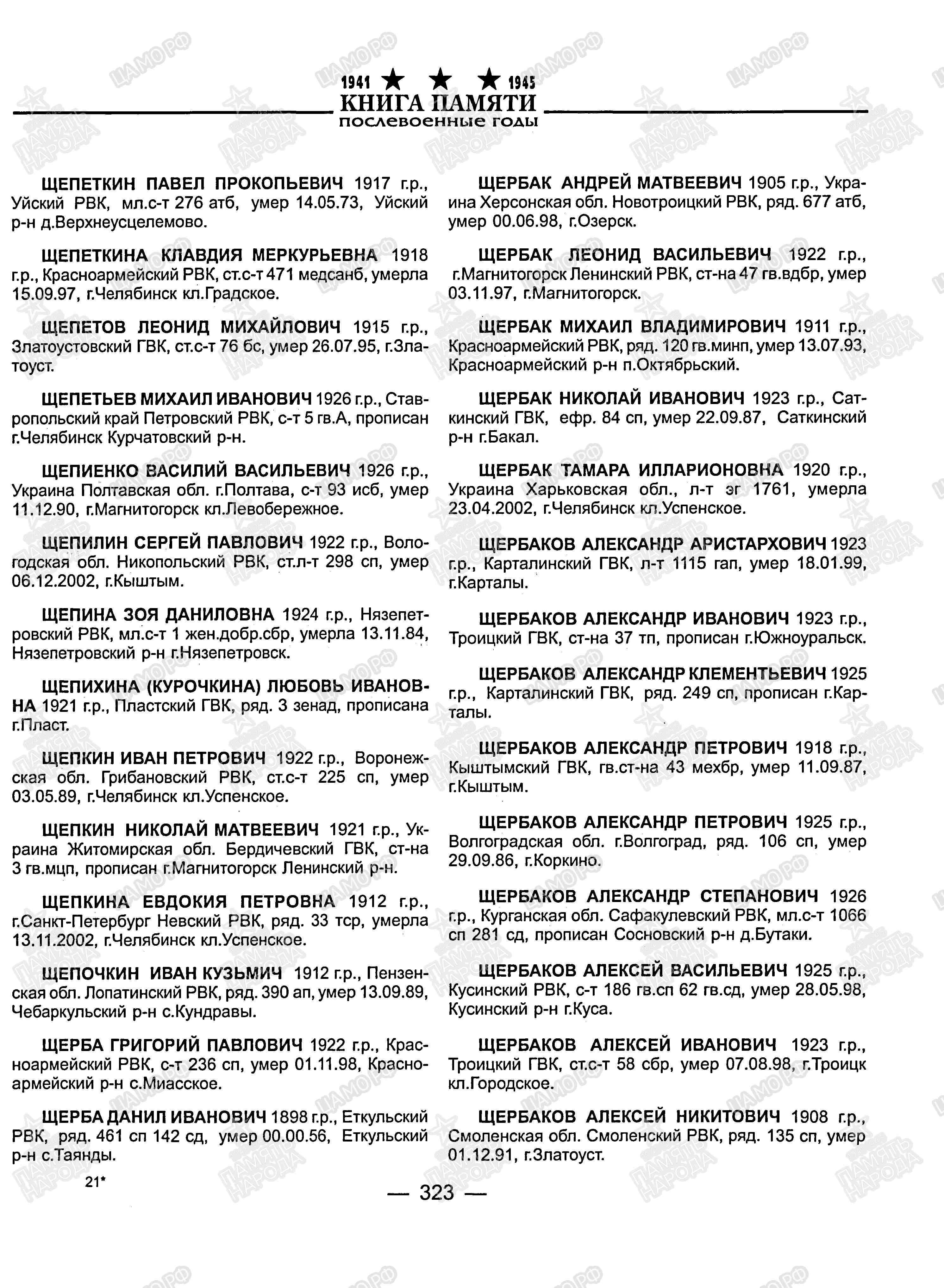 Информация: ЦАМО ф.58,о.18003,д.1387; ЦАМО ф.58,о.977528,д.161; Книга Памяти. Челябинская обл. Послевоенные годы. Том 24