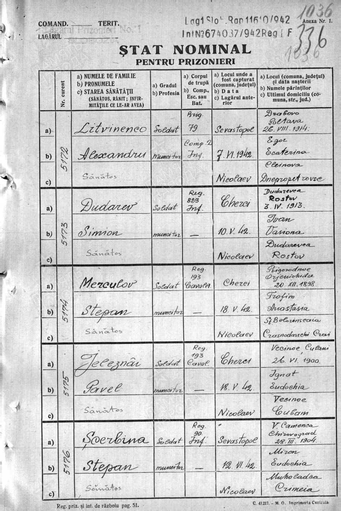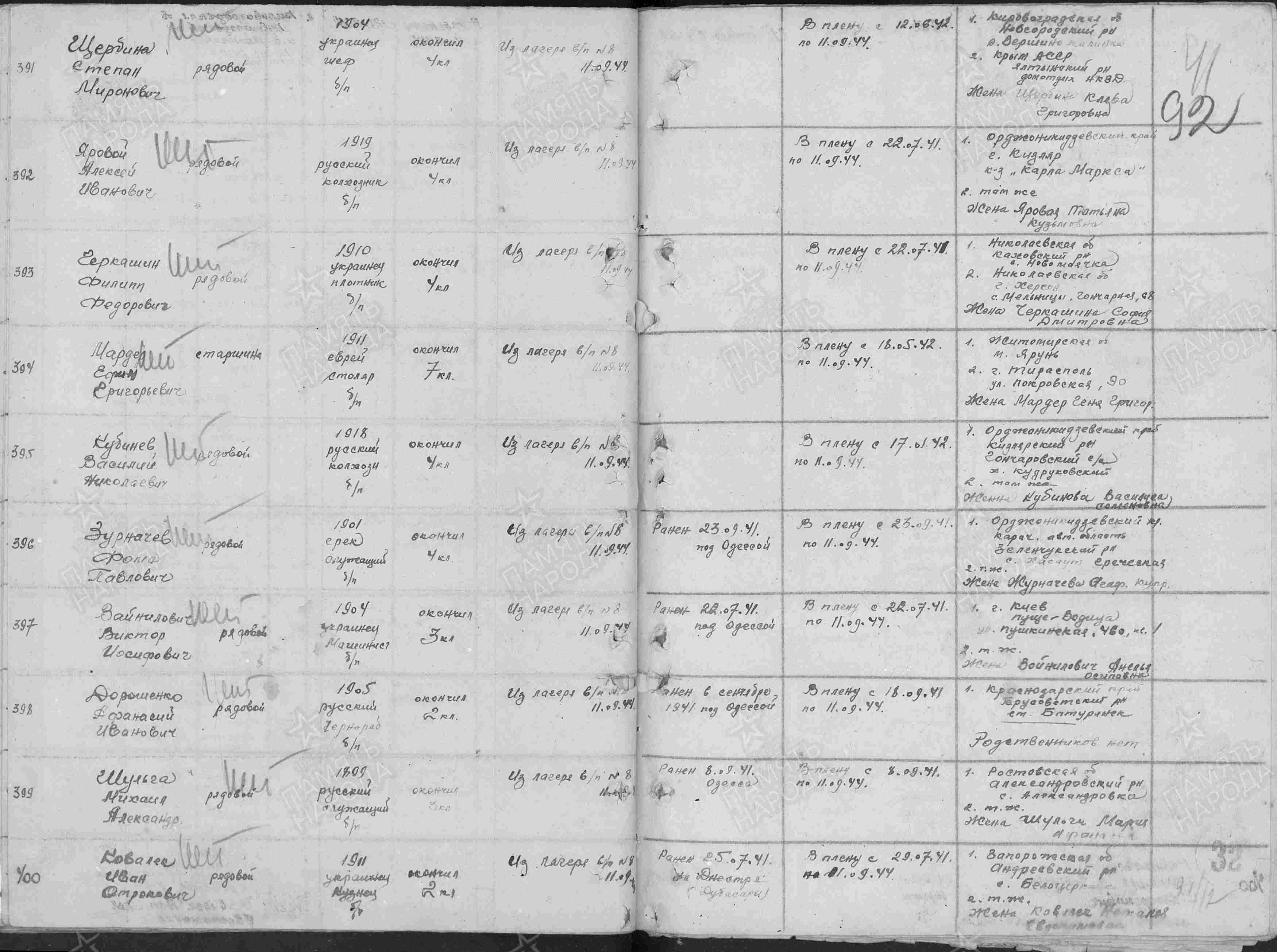 Дополнительно: Попал в плен (освобожден). Медаль «За боевые заслуги» 12.07.1945
