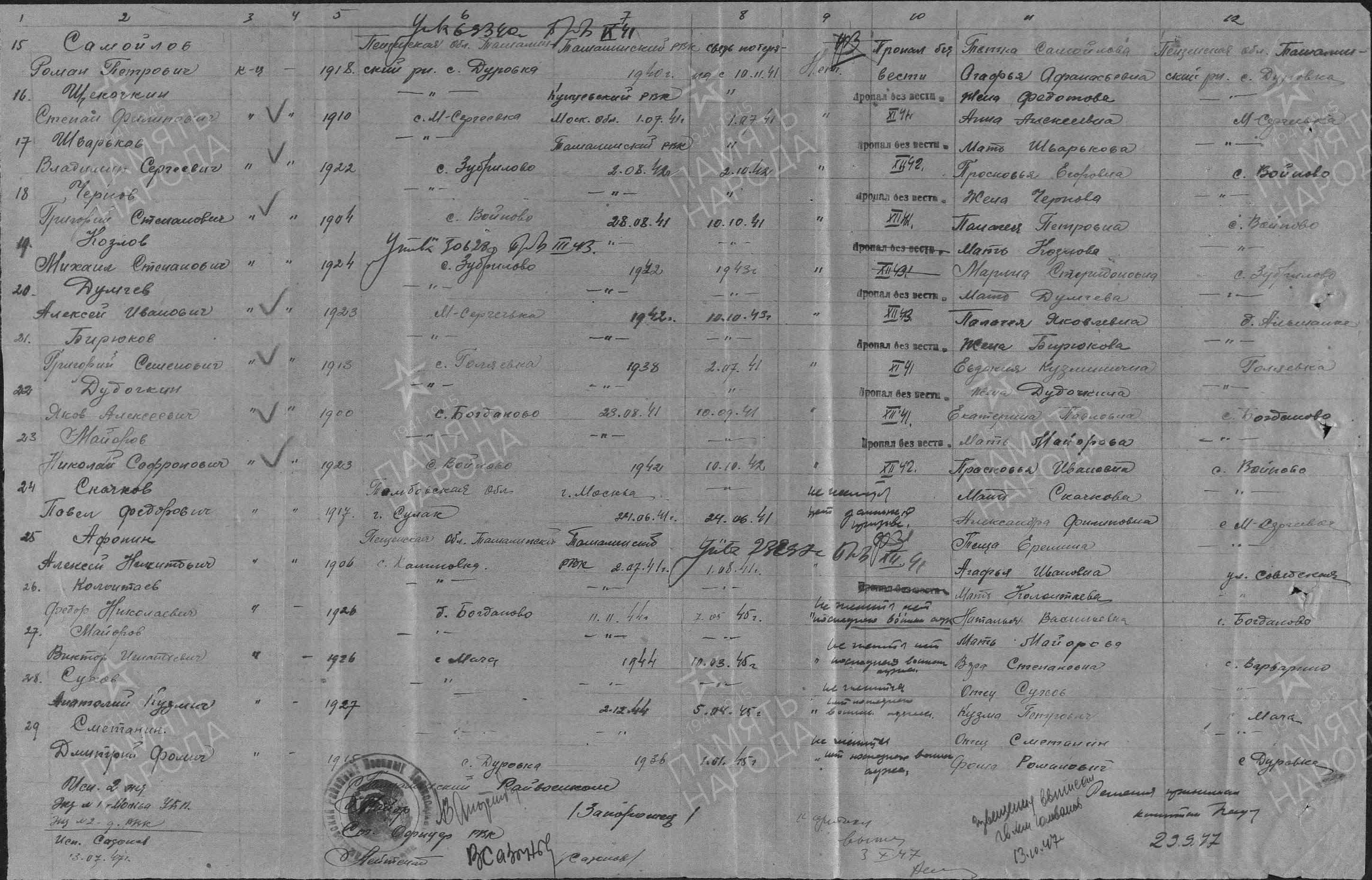 ЦАМО ф.33,о.563786,д.5; ЦАМО ф.58,о.977520,д.675; ЦАМО ф.58,о.977522,д.402