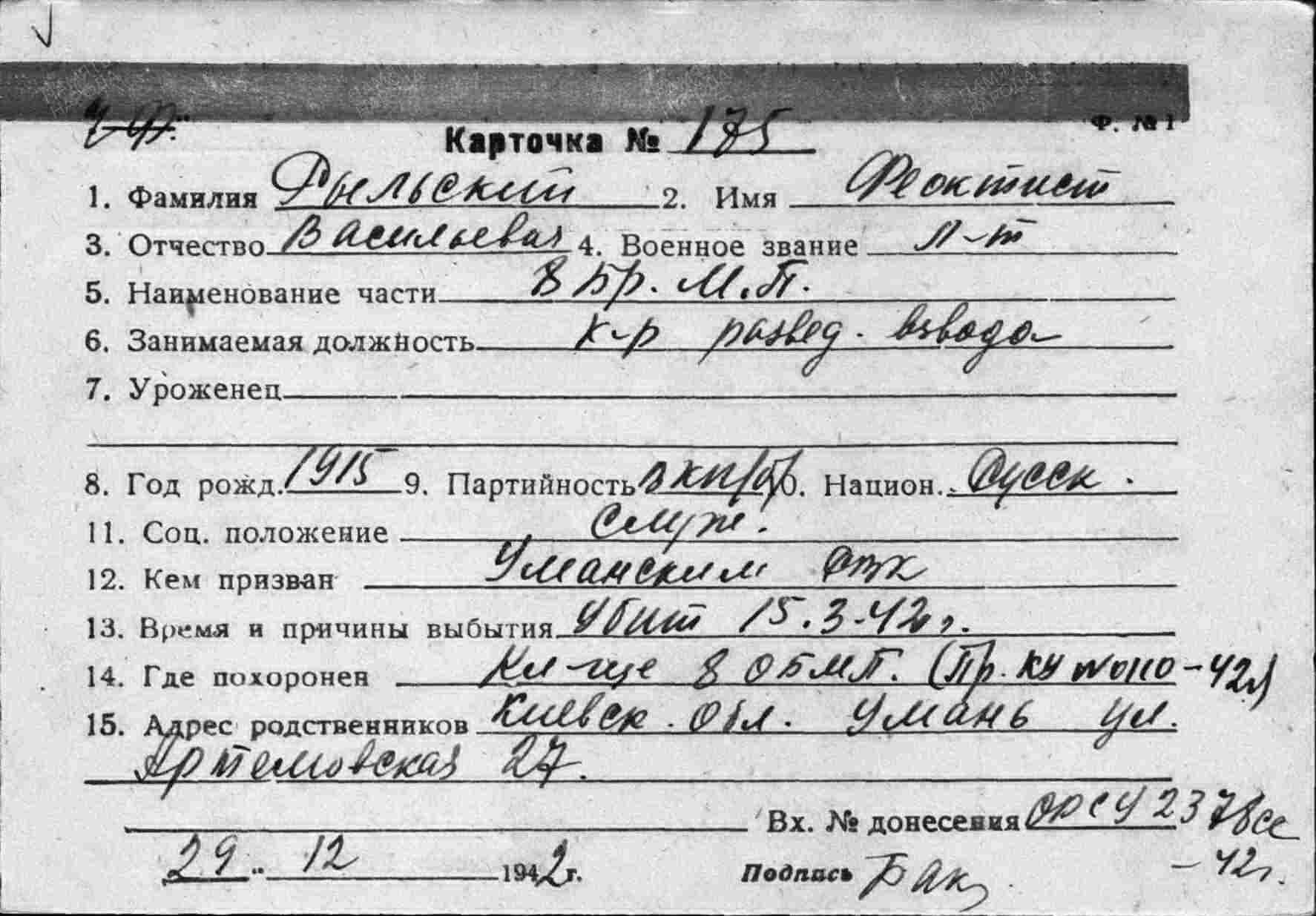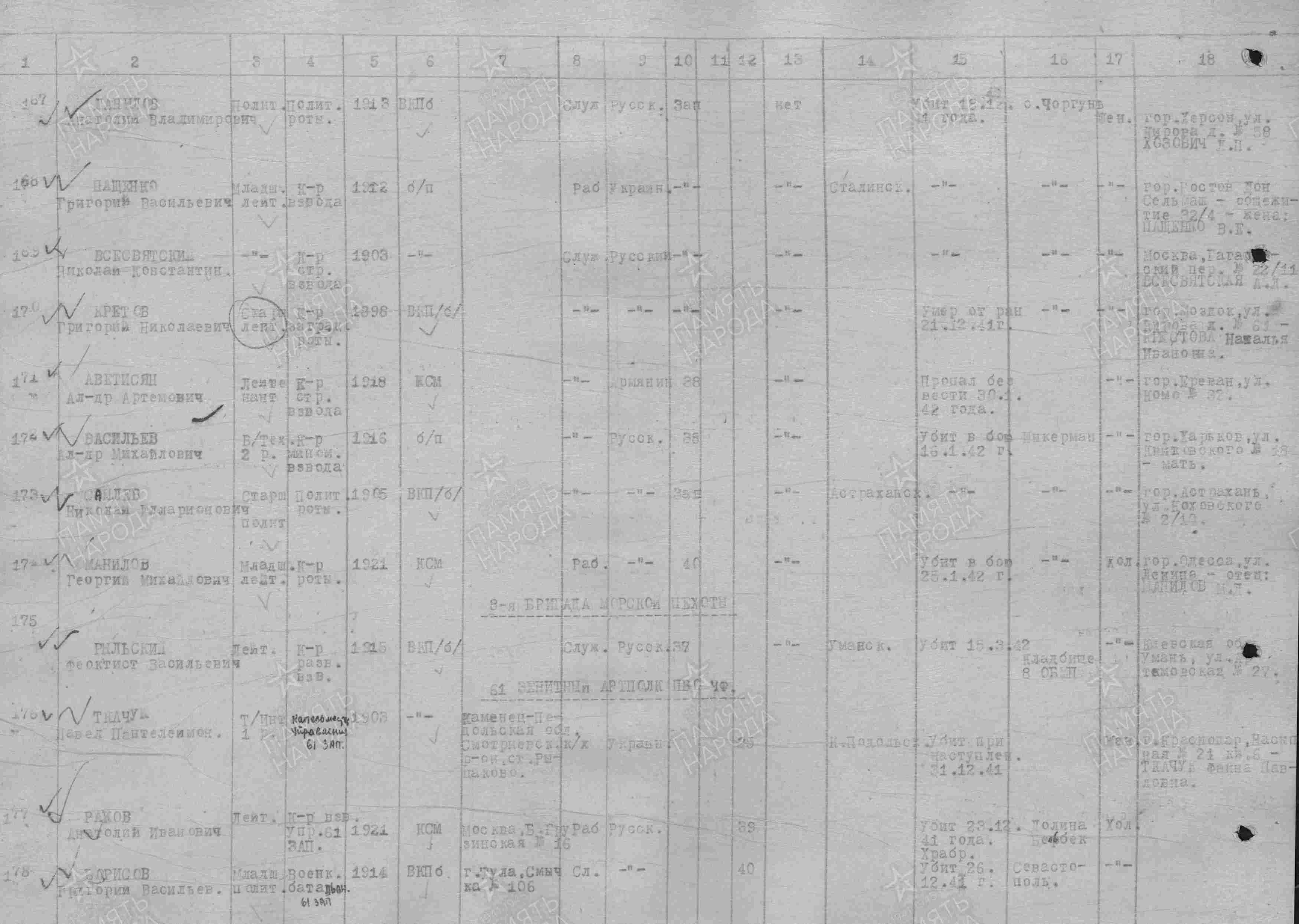 ЦВМА Картотека безвозвратных потерь; ЦВМА ф.864,о.1,д.1313; ЦВМА документы