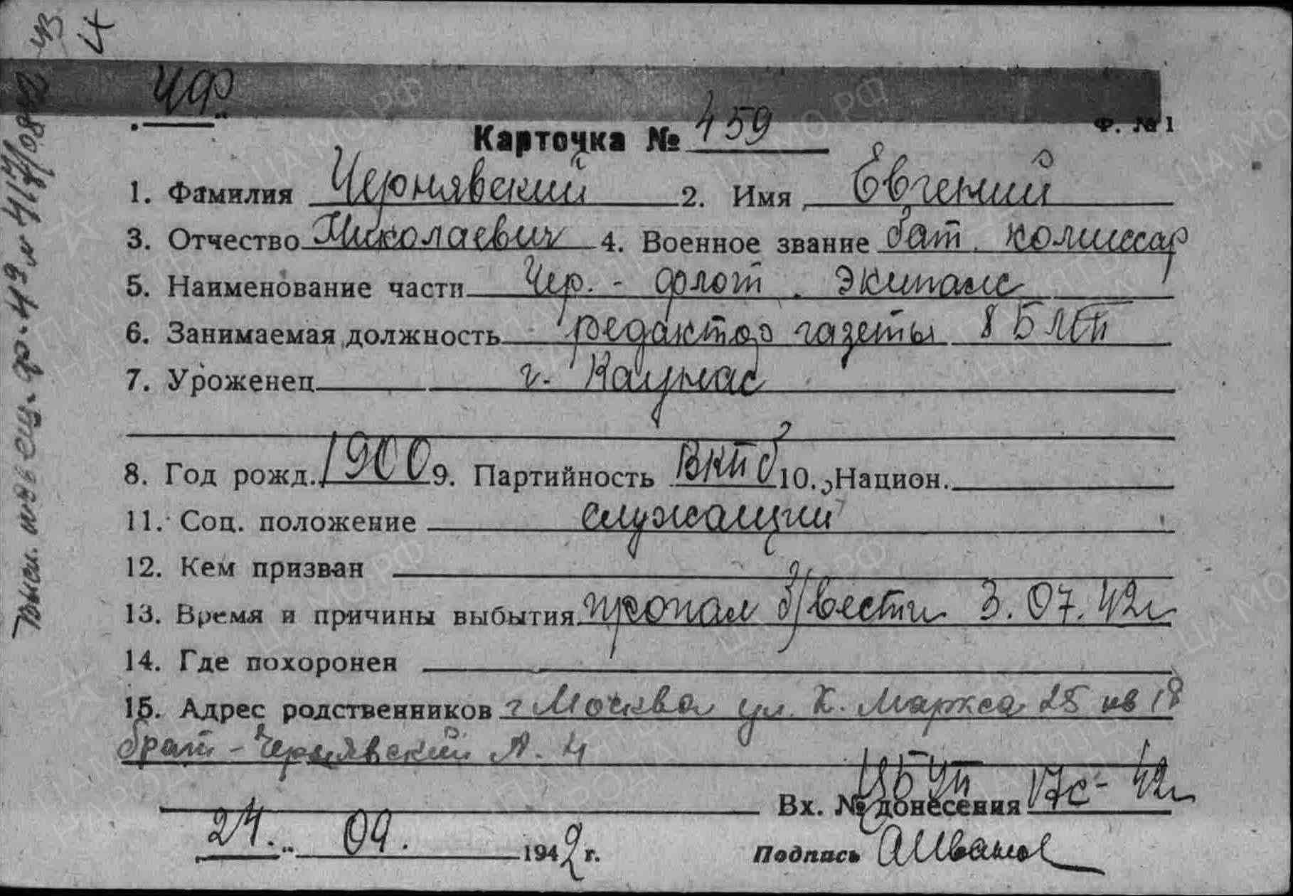 ЦВМА Картотека безвозвратных потерь; ЦВМА документы; ФГБУК «Музей-заповедник героической обороны и освобождения Севастополя»