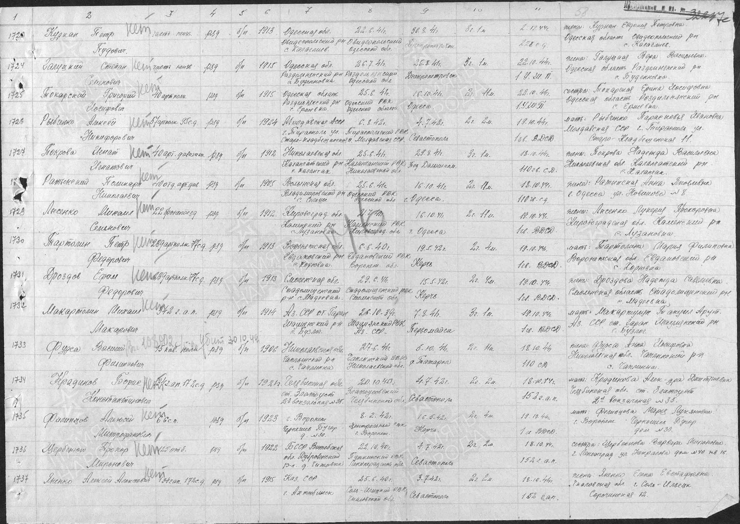 ЦАМО ф.58,о.18003,д.1387; ЦАМО ф.58,о.977528,д.161