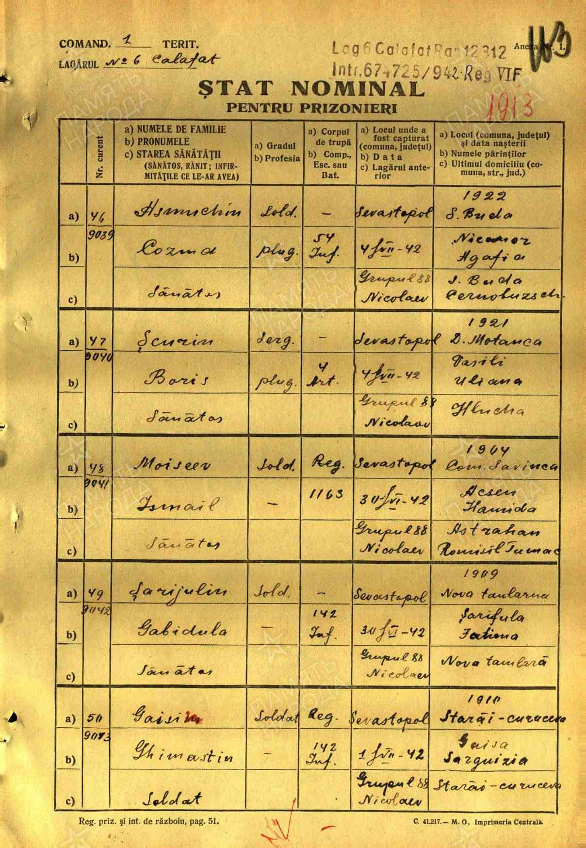 Запись о военнопленном