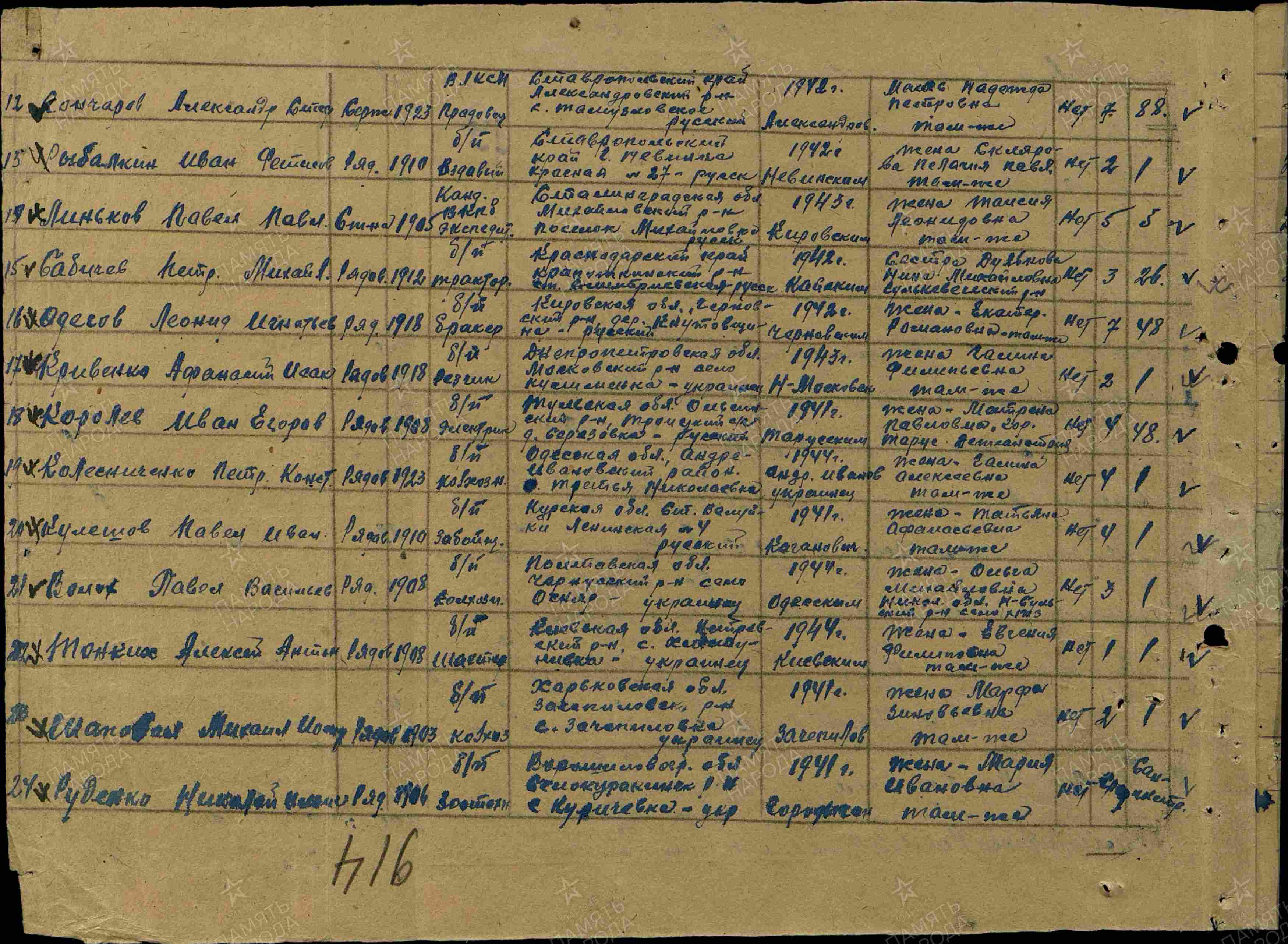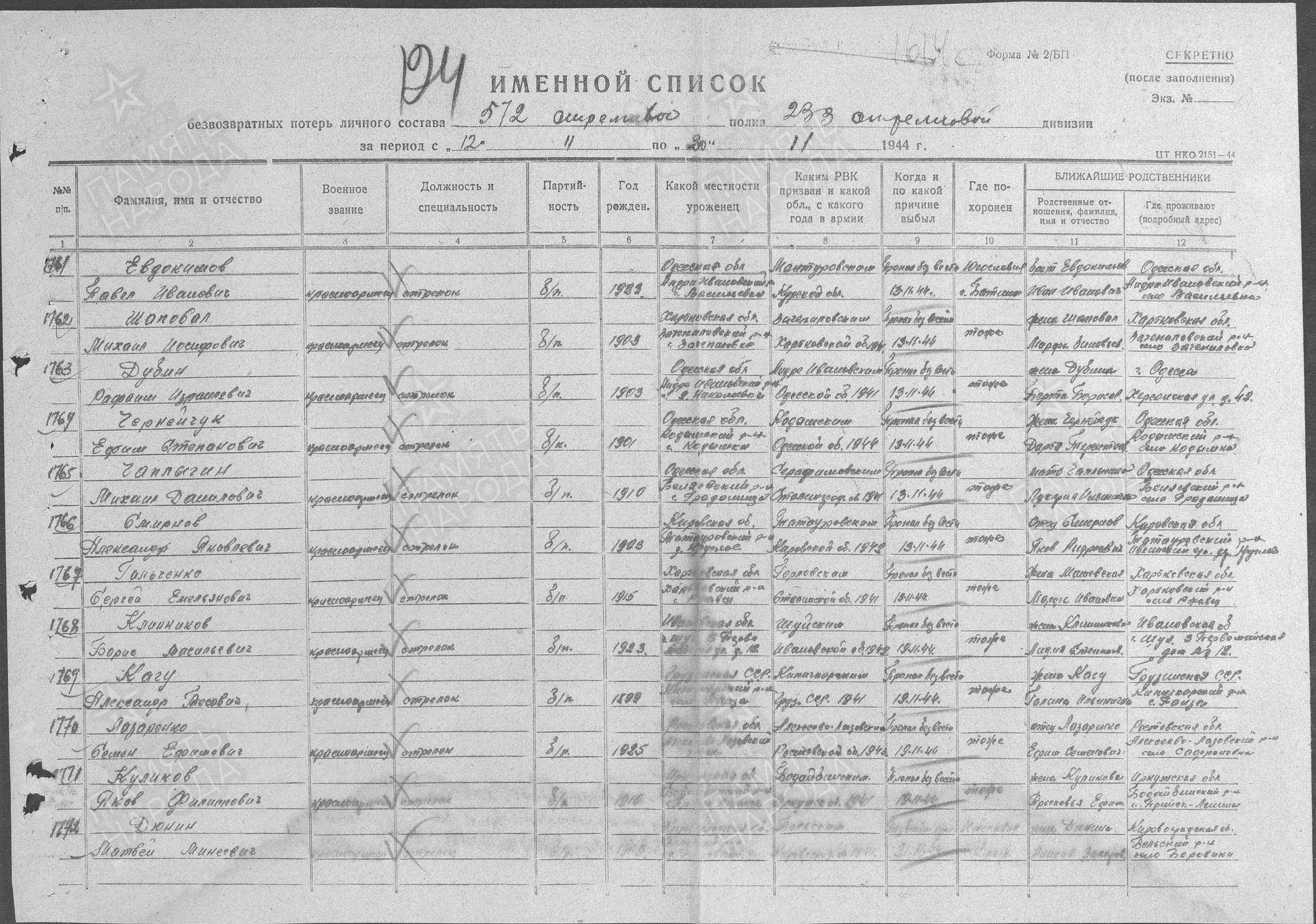 ЦАМО ф.58,о.18002,д.1614; ЦАМО ф.58,о.977528,д.149; ЦАМО ф.58,о.18003,д.18; ЦАМО ,ф.7219,о.92197с,д.3; ЦАМО ф.8496,о.168521,д.1