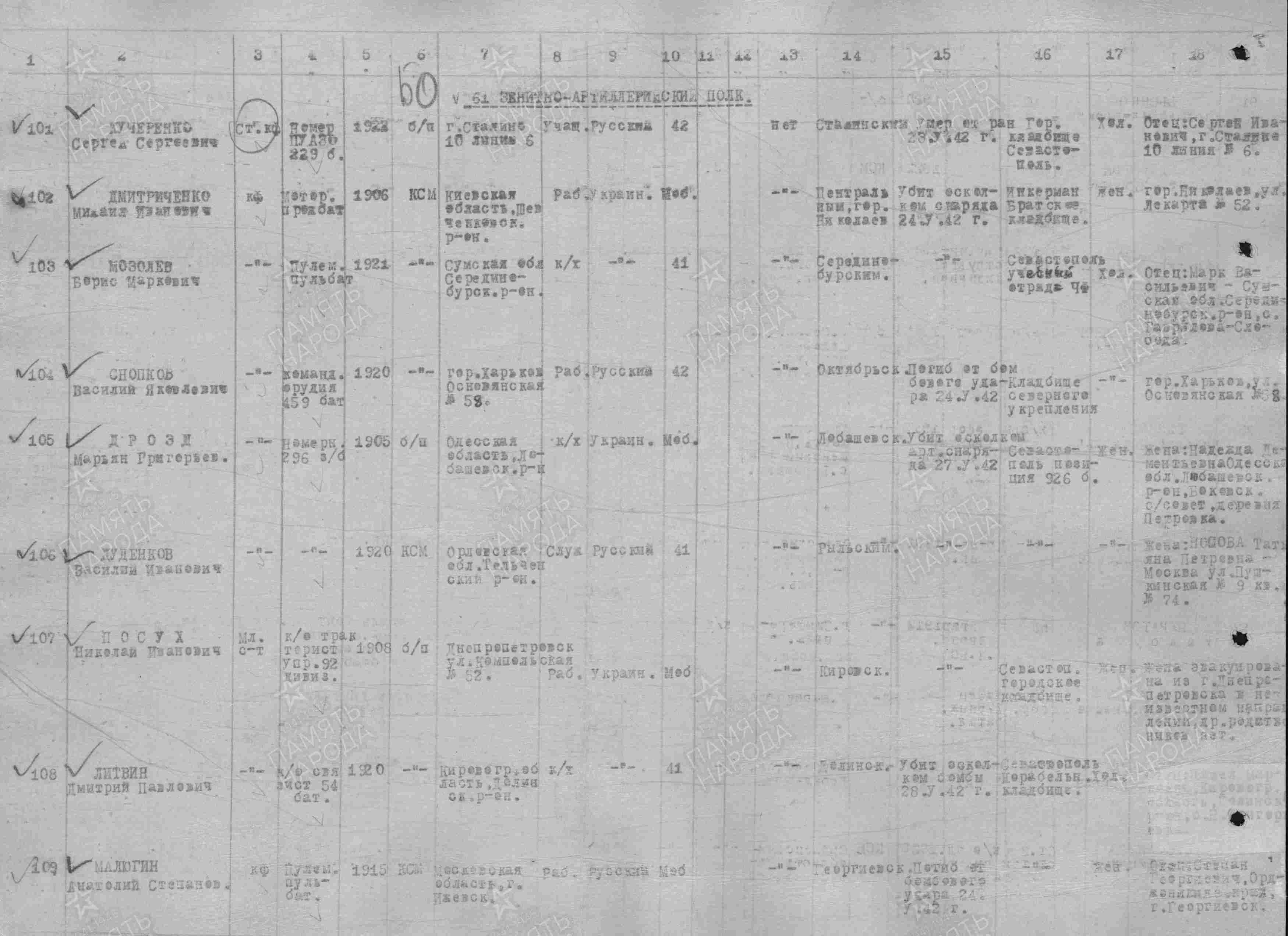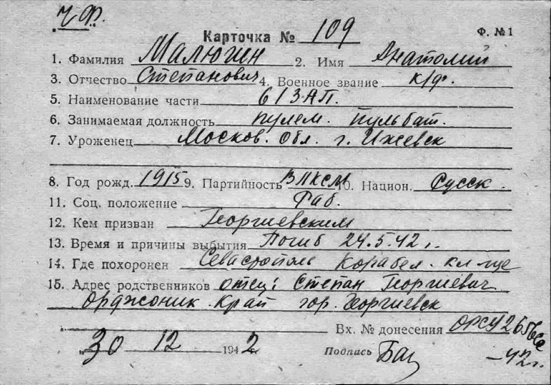 ЦВМА Картотека безвозвратных потерь; ЦВМА ф.864,о.1,д.1313; ЦВМА ф.1250,о.2,д.414; ЦВМА документы