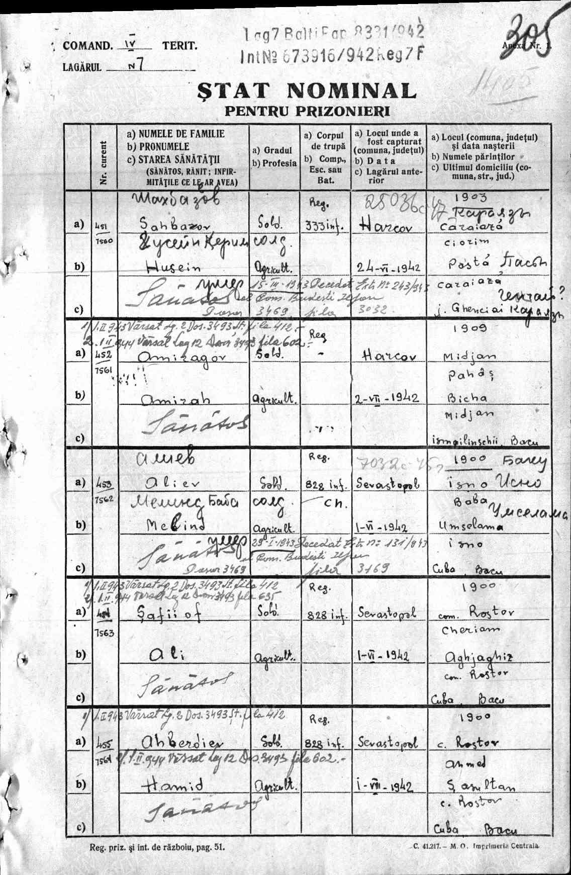 Место призыва: Кубинский РВК, Азербайджанская ССР, Кубинский р-н
