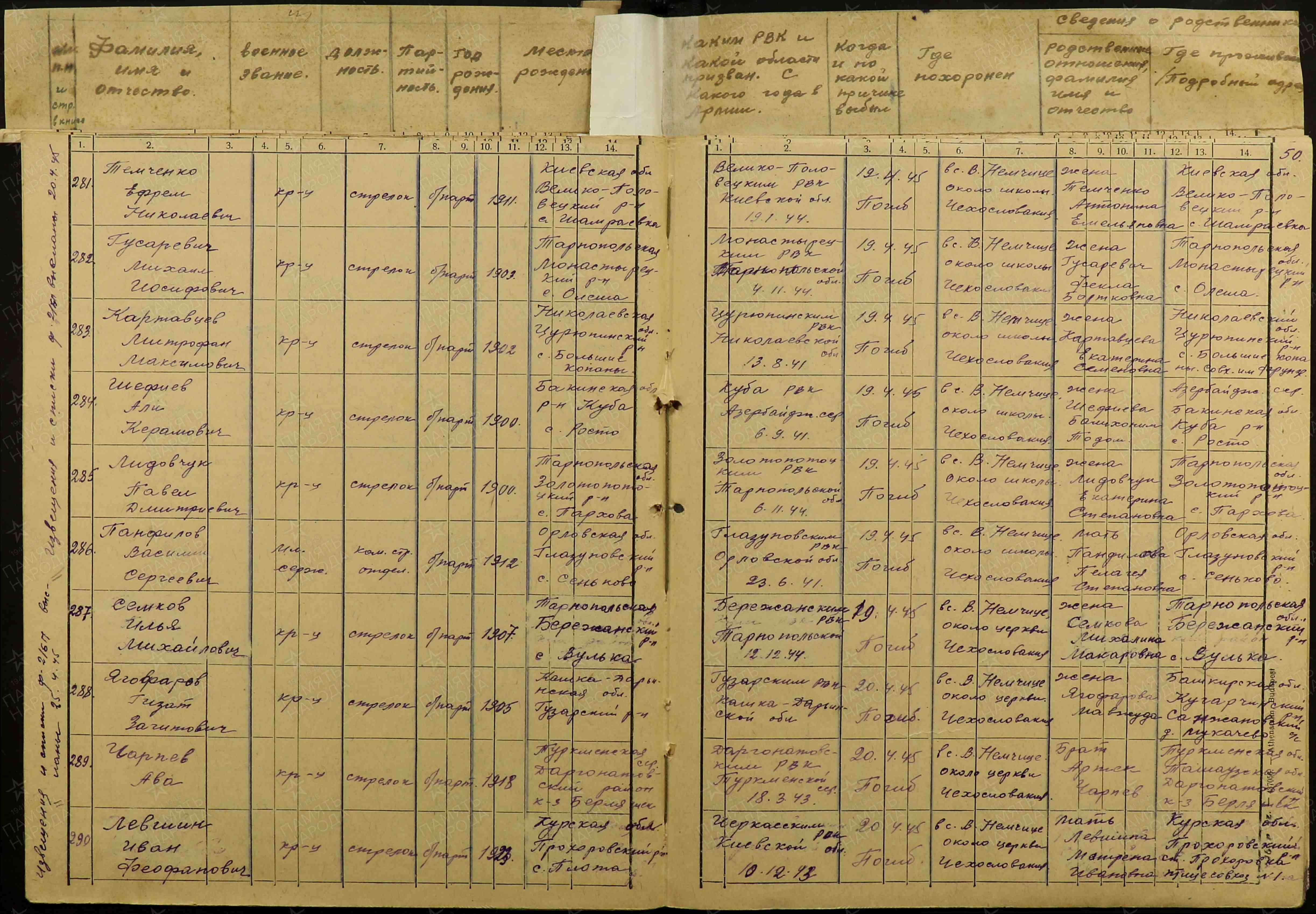 Дополнительно: Попал в плен (освобожден). 19.04.1945 погиб. Первичное место захоронения: Чехословакия, с. В. Немчице, у школы