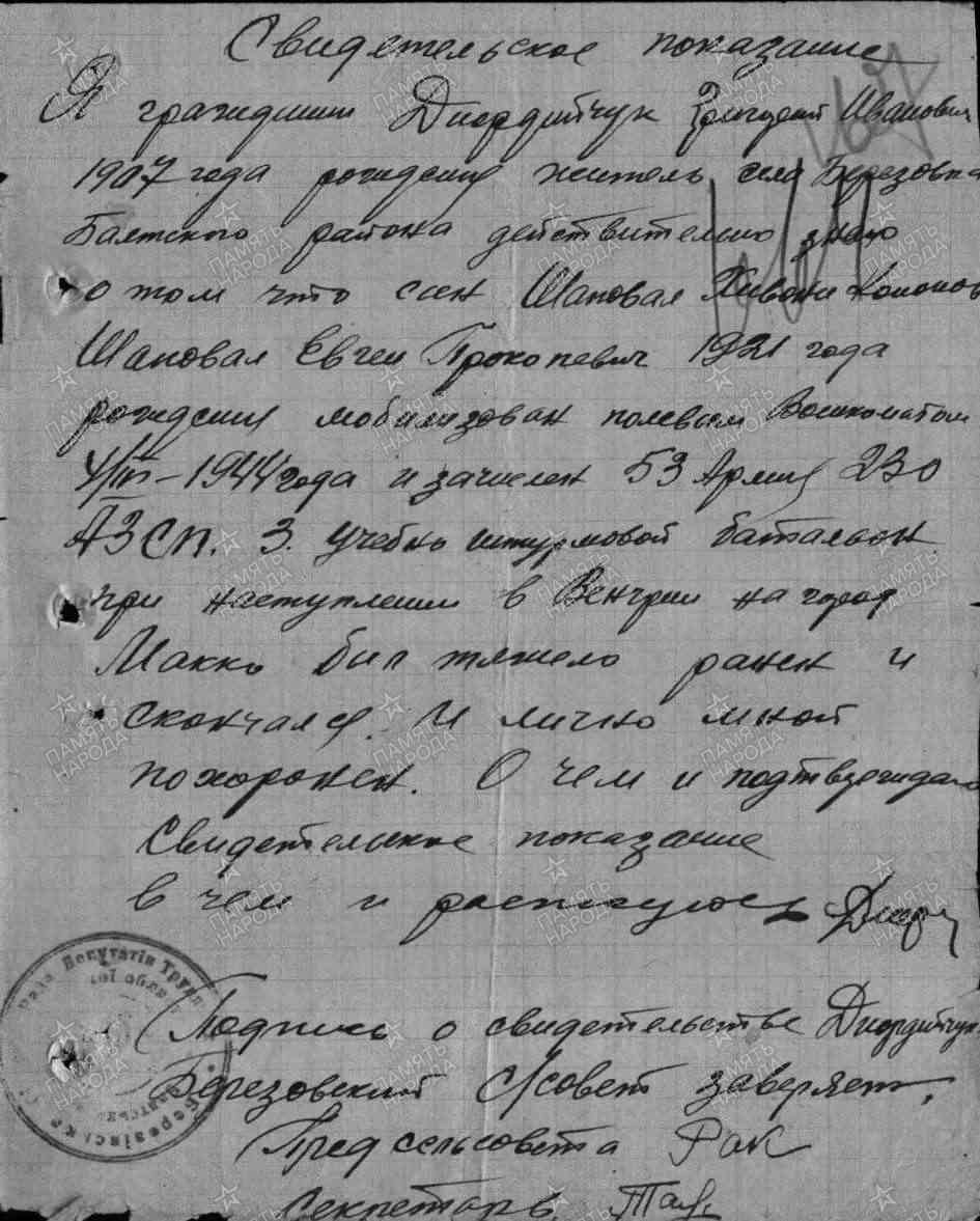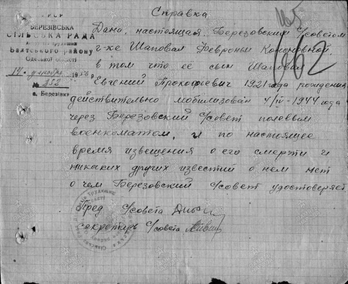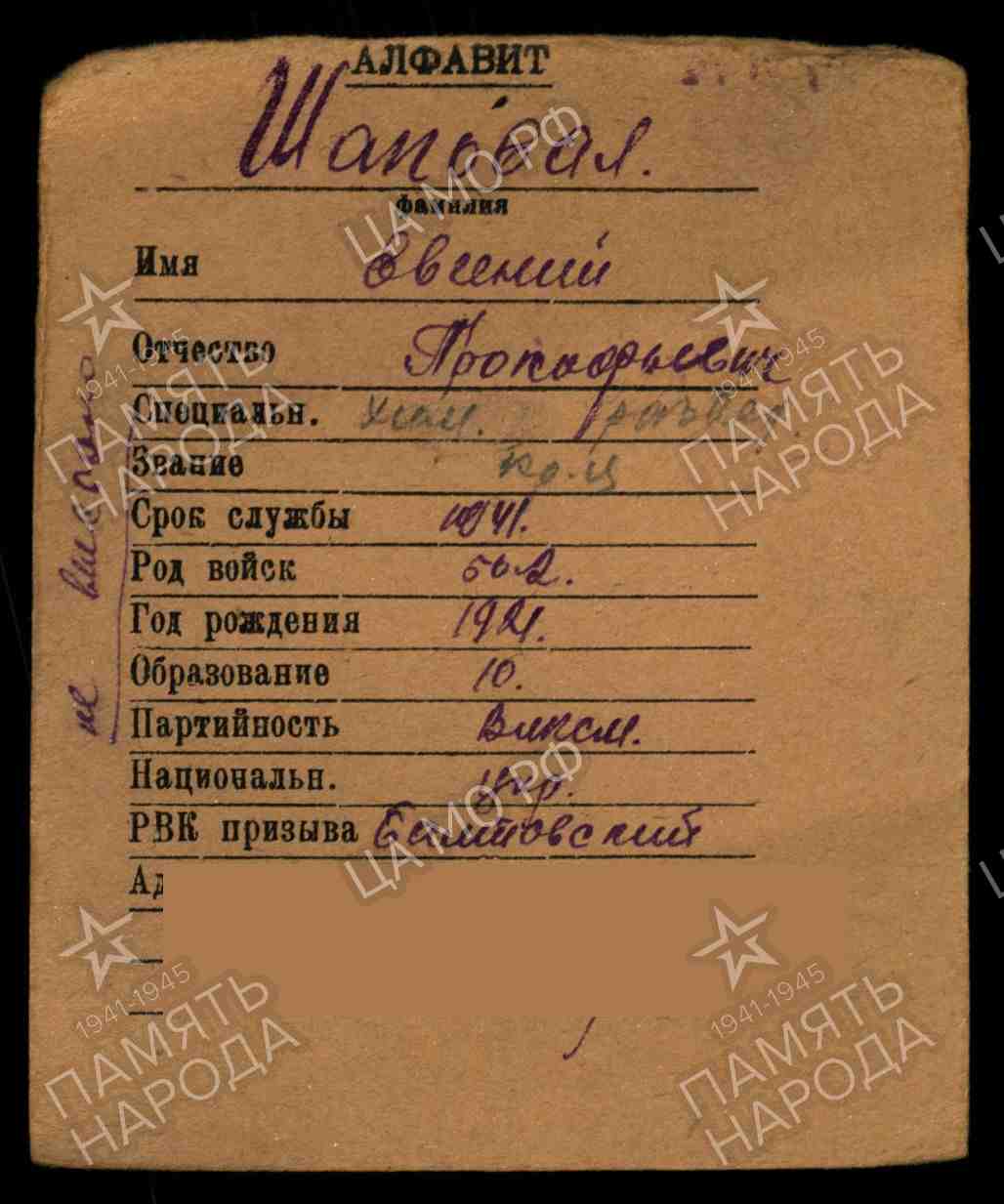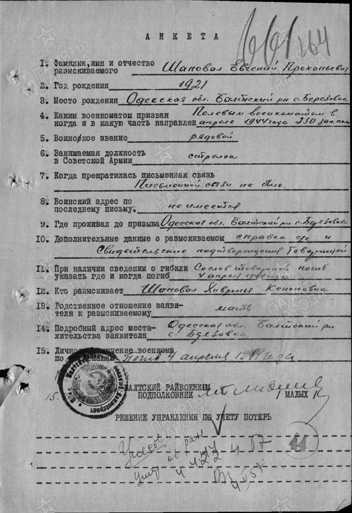 Ф.И.О.: Шаповал Евгений Прокофьевич (Прокопьевич, Прокопович)