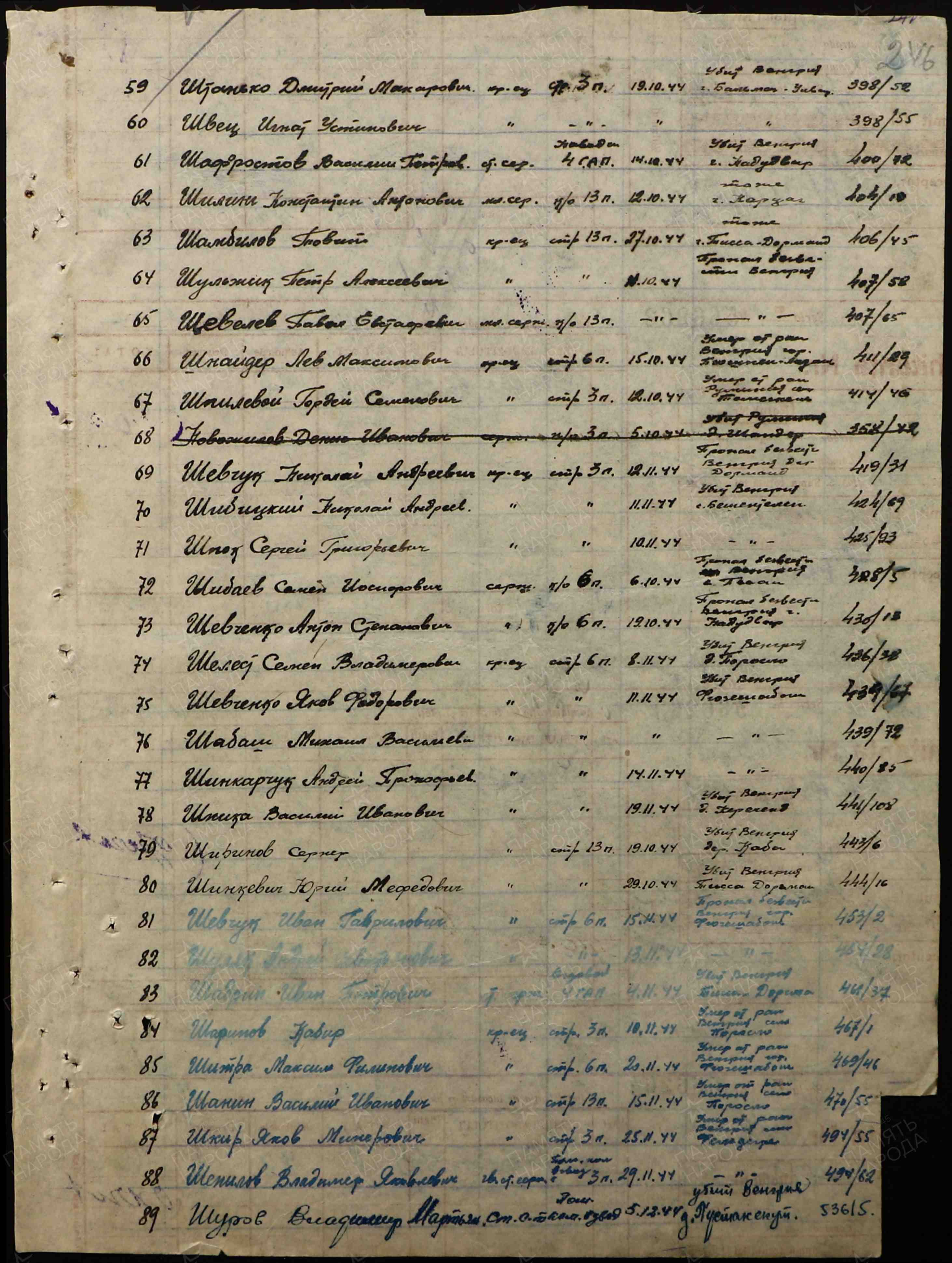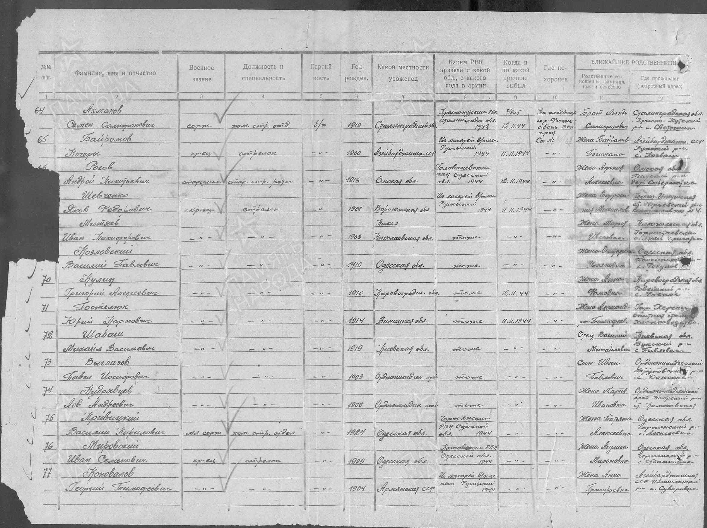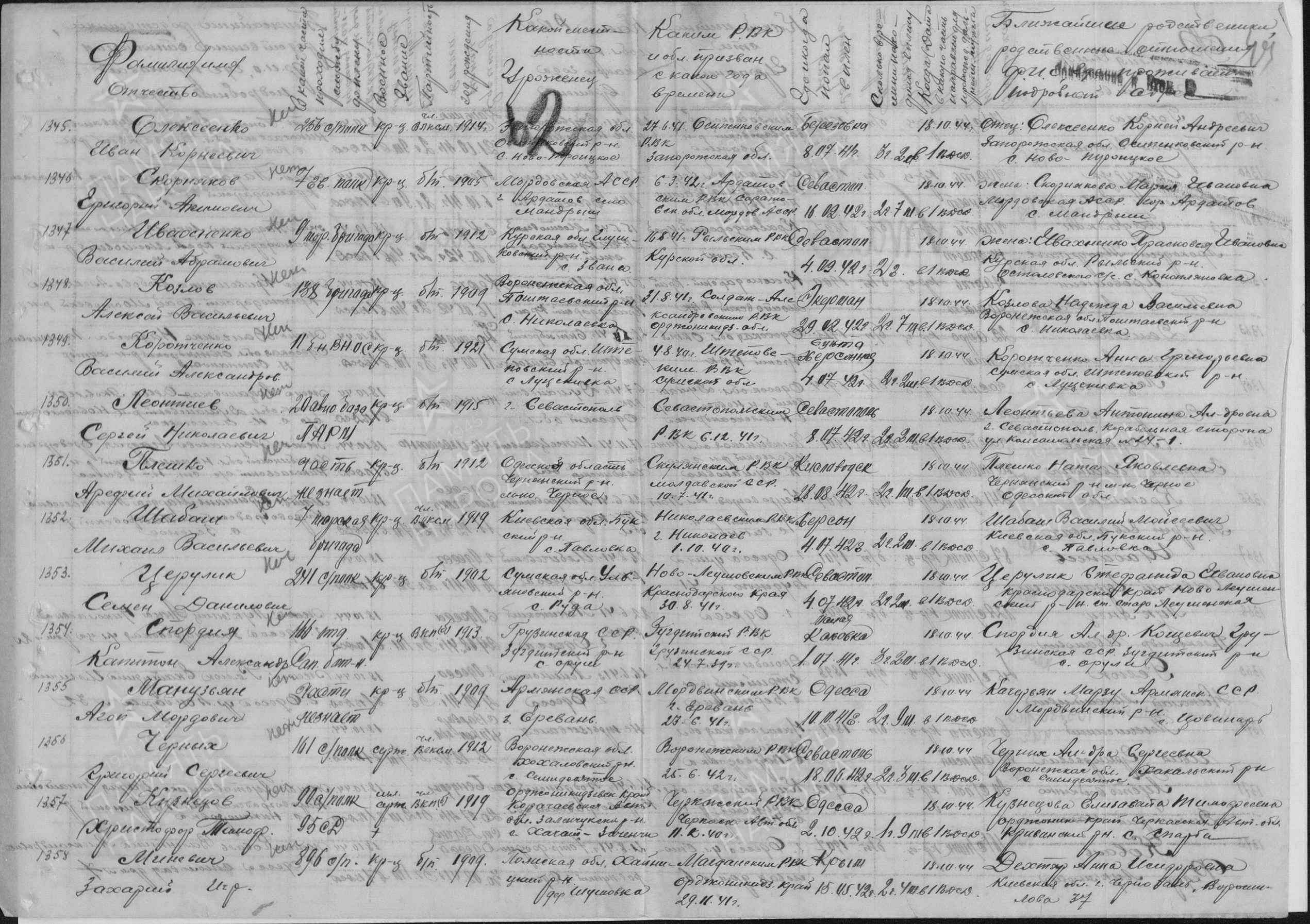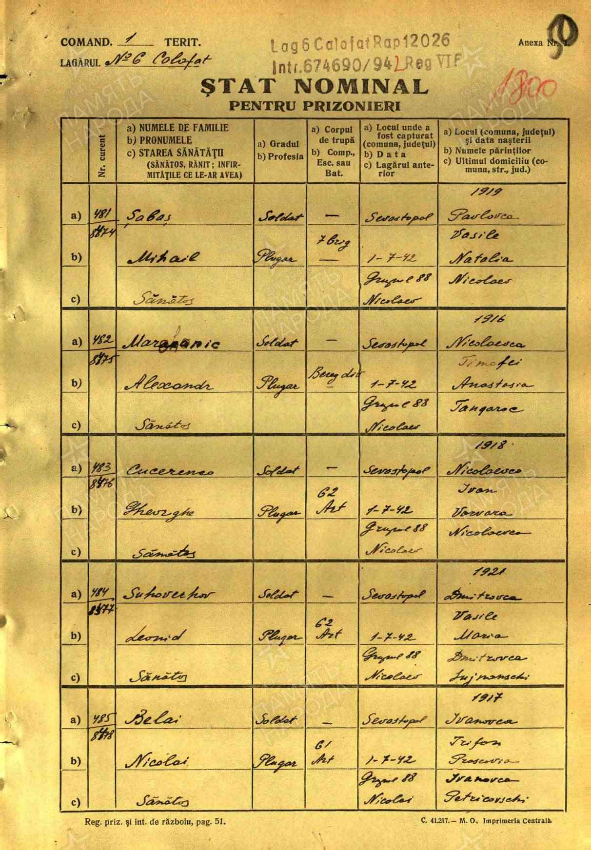 ЦВМА Картотека безвозвратных потерь; ЦВМА документы; ЦАМО ф.58,о.18002,д.1617; ЦАМО ф.58,о.977528,д.128; ЦАМО ф.58,о.18002,д.1365; ЦАМО ф.1338,о.2,д.34
