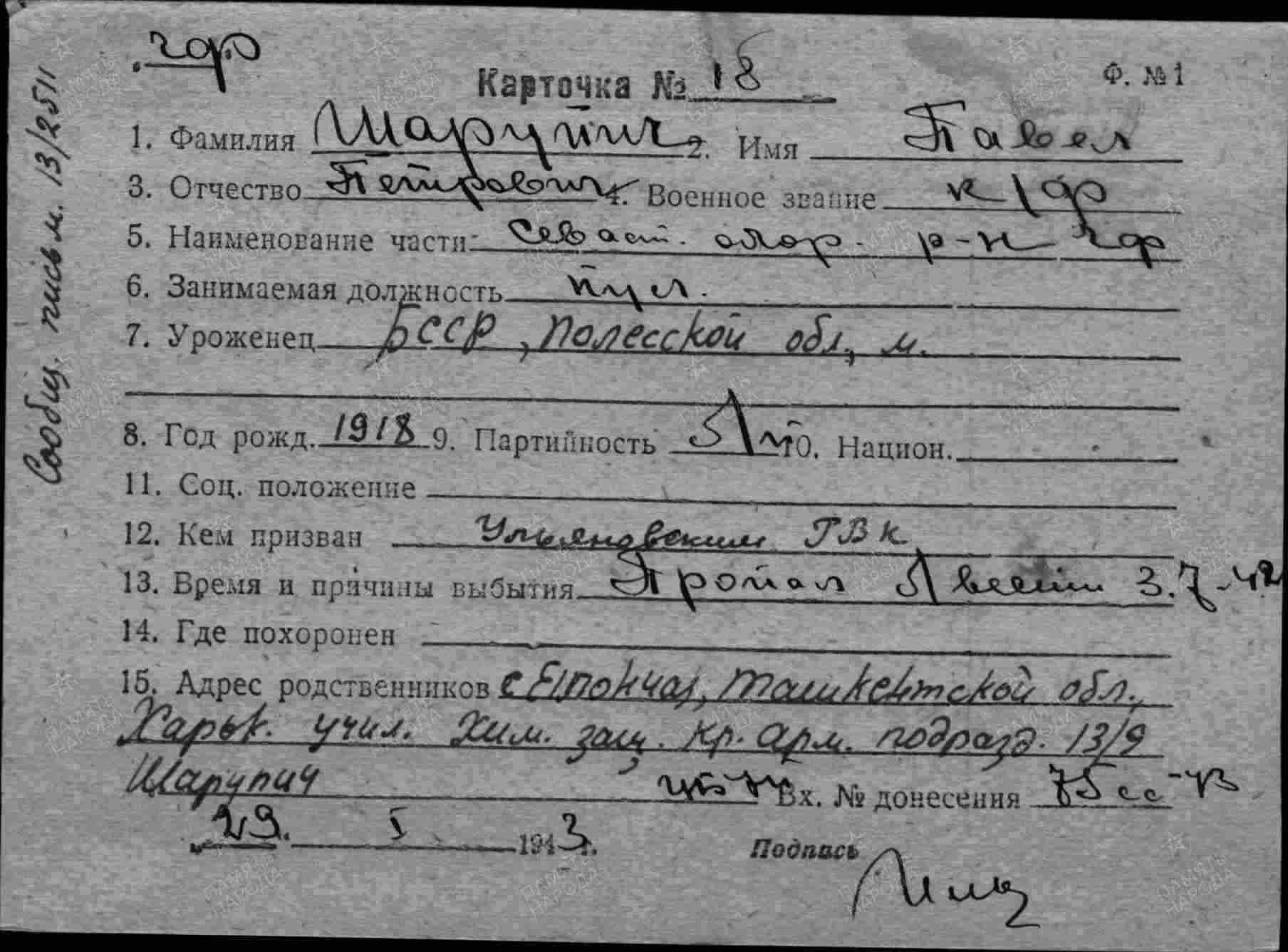 Информация: ЦВМА Картотека безвозвратных потерь; ЦВМА документы; ЦАМО ф.58,о.977528,д.128