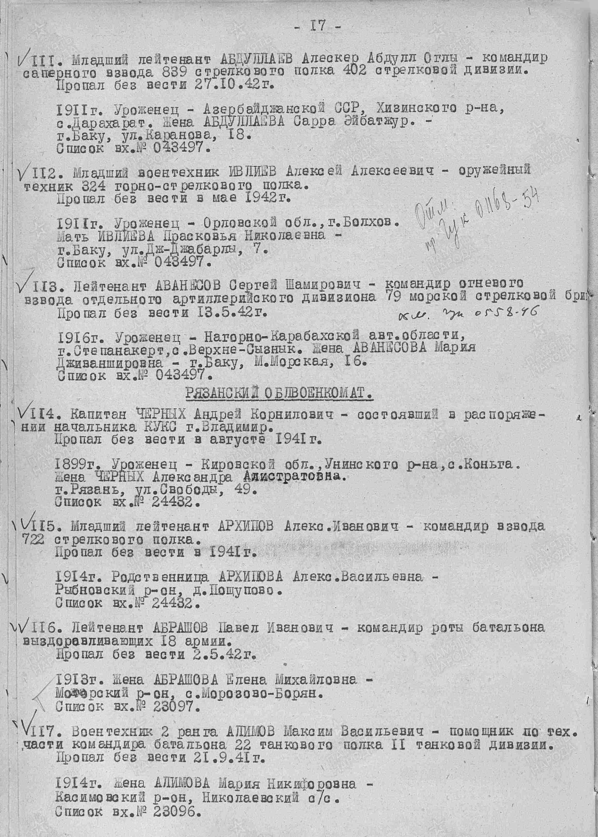 Информация: ЦАМО ф.33,о.11458,д.628; ЦАМО ф.58,о.977520,д.155; ЦАМО ф.58,о.18002,д.1613; ЦАМО ф.33,о.563785,д.7; ЦАМО ф.33,о.744827,д.12; ЦАМО ф.33,о.11459,д.571; ЦАМО ф.58,о.977528,д.138