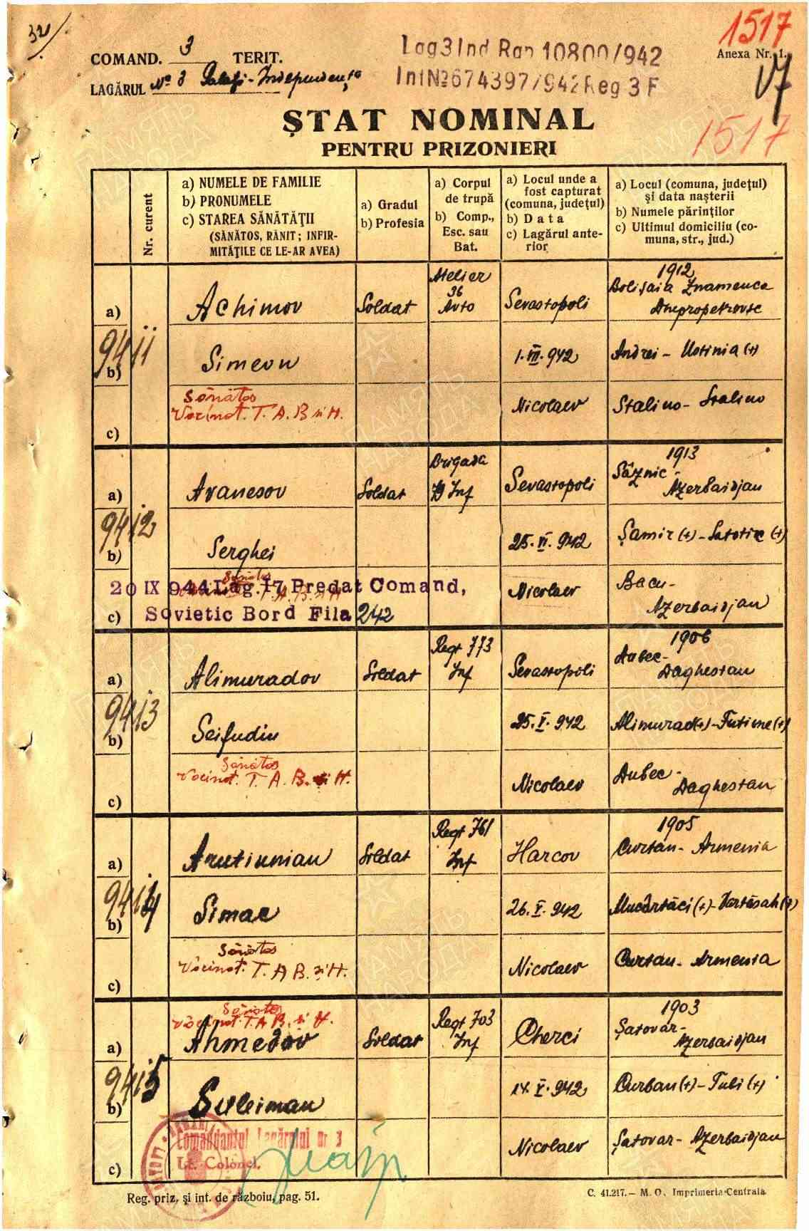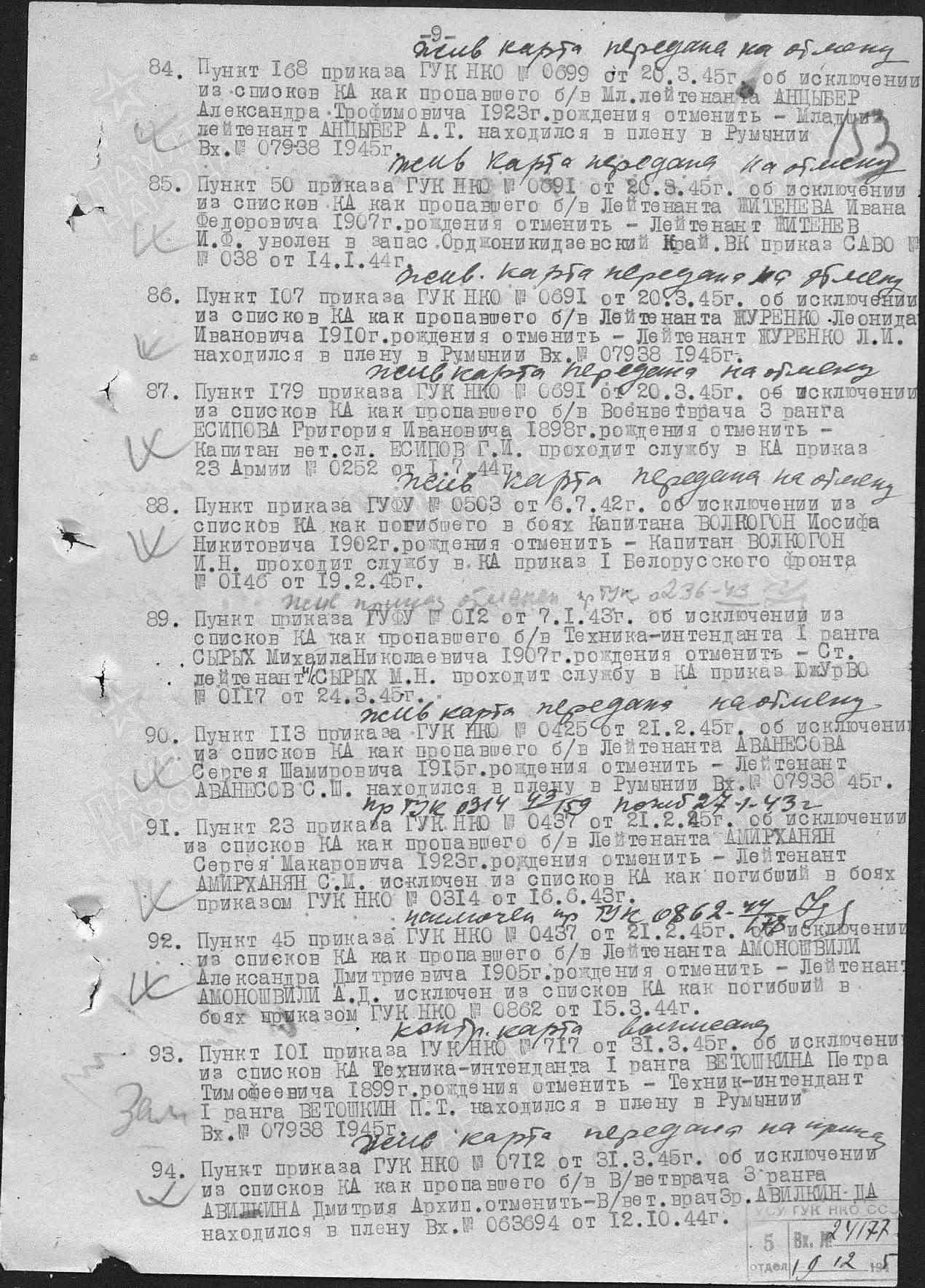 Дополнительно: 25.06.1942 попал в плен (освобожден)