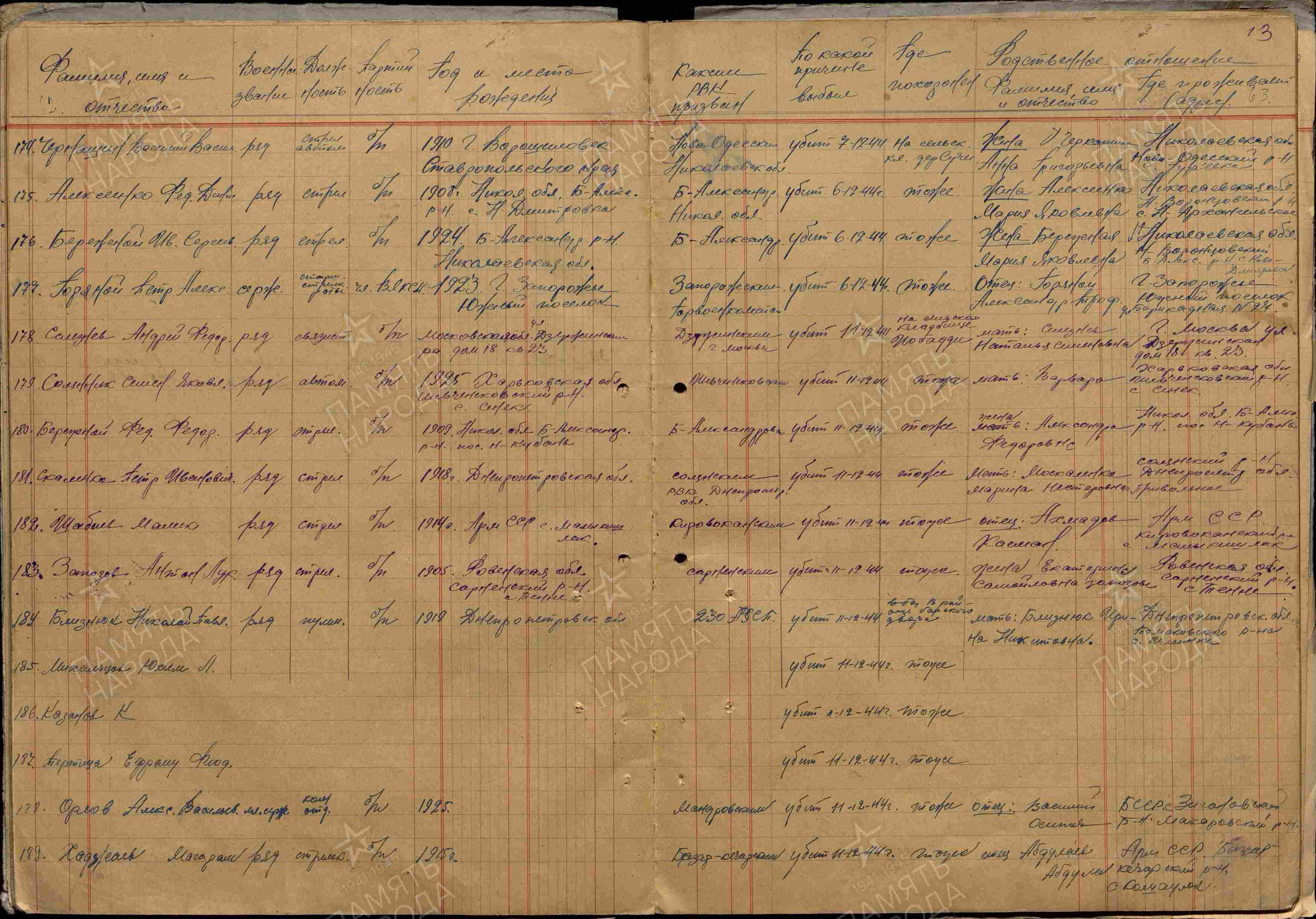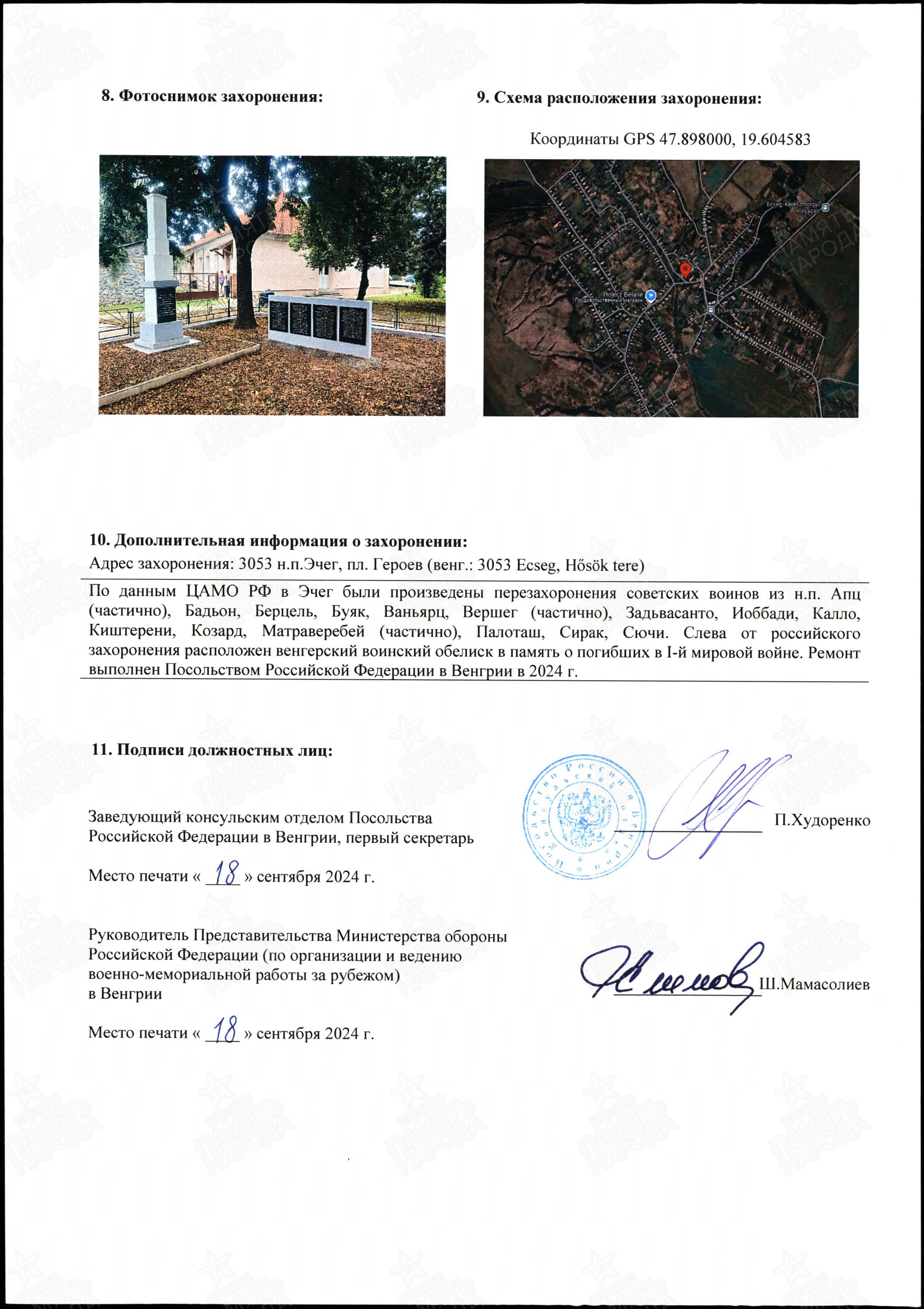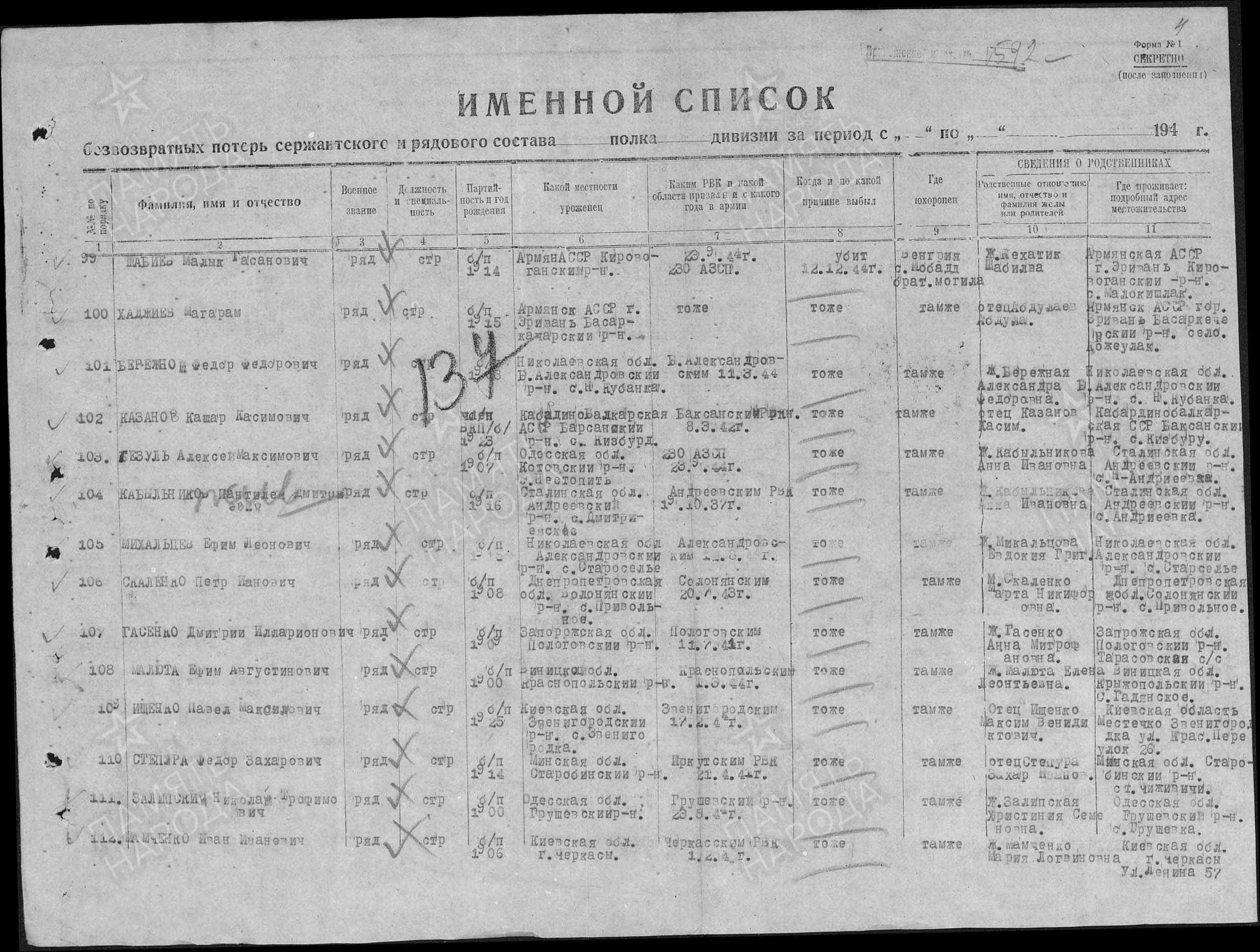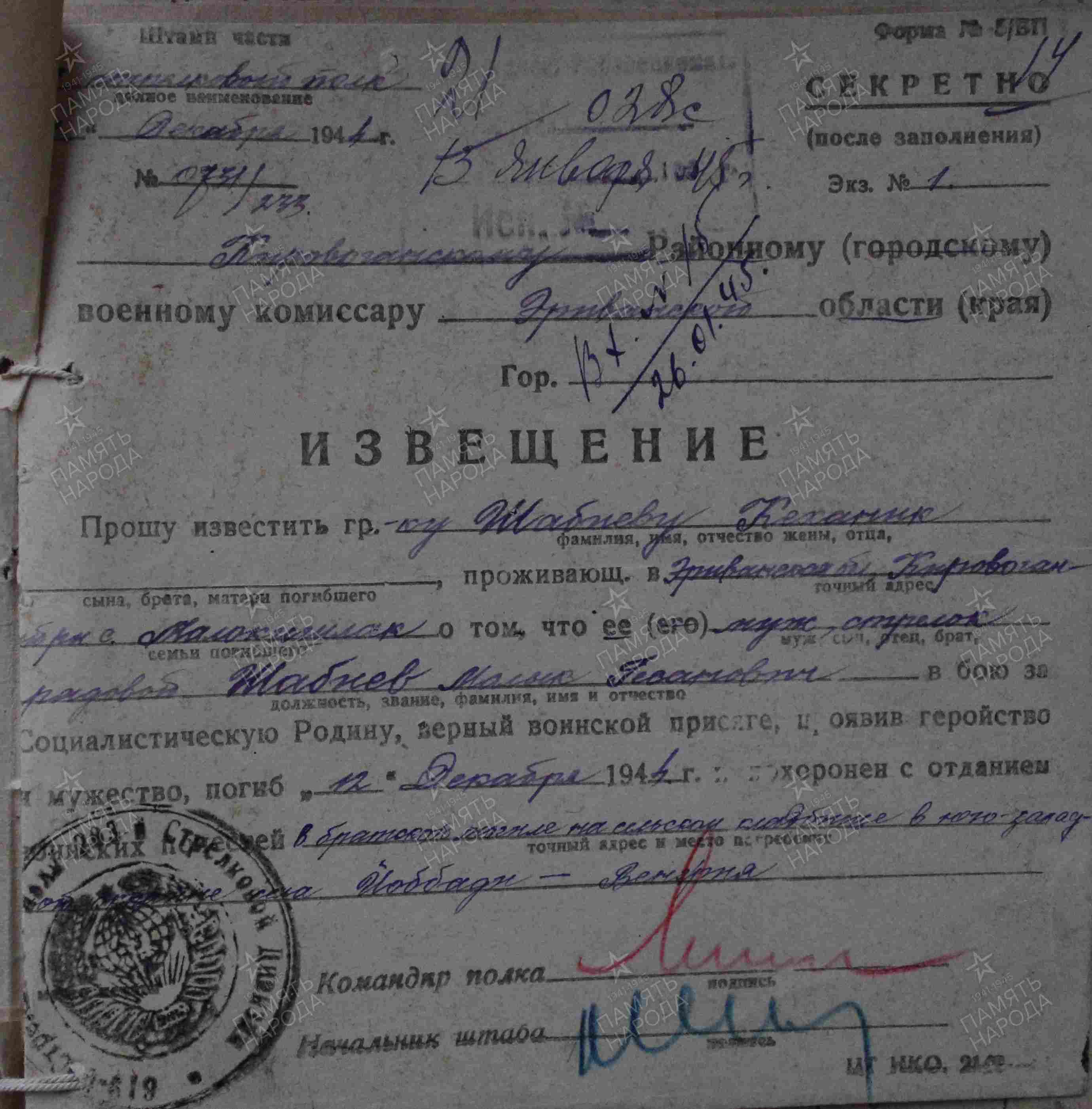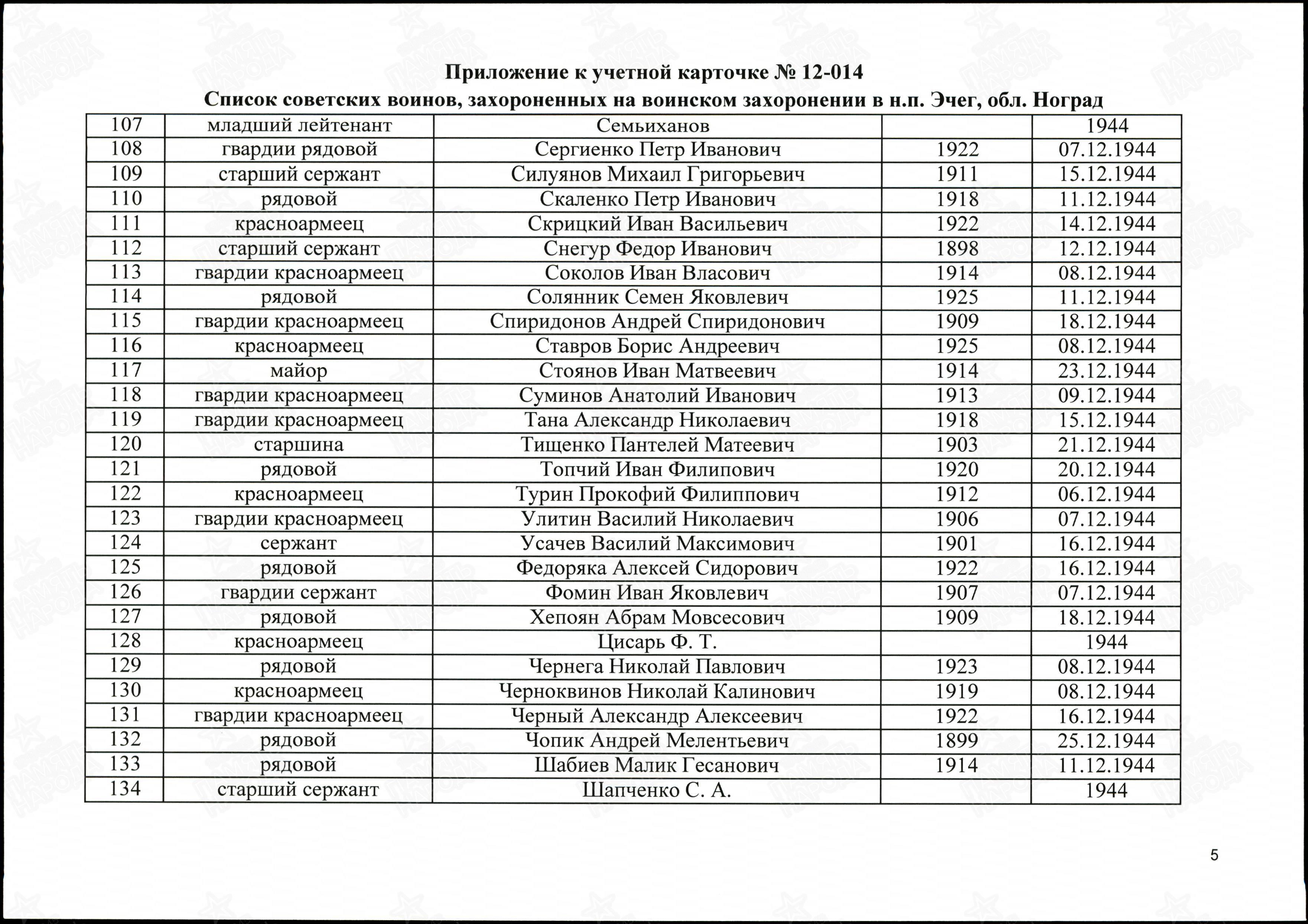 ЦАМО ф.58,о.18002,д.1604; ЦАМО ф.58,о.977528,д.138; ЦАМО ф.58,о.18003,д.26; ВК Республики Армения, ф. Ванадзорский РВК, д.2; ЦАМО ф.7272,о.535248с,д.35; ЦАМО ф.1465,о.2,д.36; Паспорт захоронения